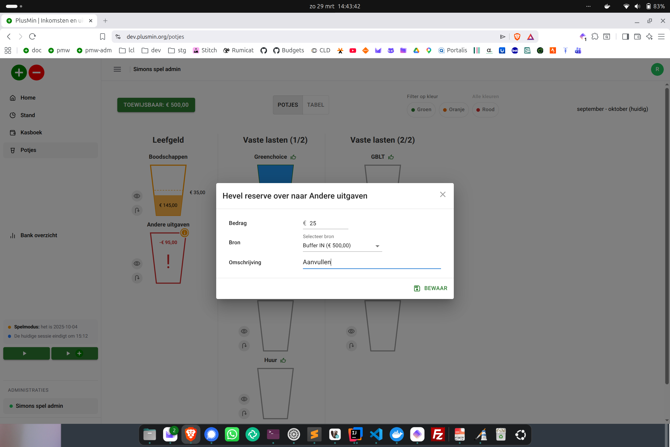 Met een snelle berekening concludeert Simon dat €25 voldoende moet zijn. Hij tast naar zijn ‘Buffer In’-potje, haalt voorzichtig €25 weg en verhuist het naar ‘Andere uitgaven’. Het is een kleine financiële acrobatiek, maar het moet werken om de rest van de maand te overleven.